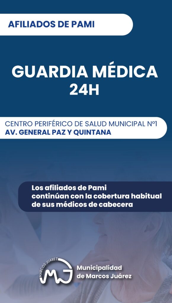 A partir de hoy en el Centro de salud municipal de Gral. Paz y Quintana se atenderá la guardia del PAMI. Allí se brindará atención médica continua con especialidades destinadas a afiliados. Desde las 00 h quedó habilitada la guardia médica las 24 horas de PAMI en el Centro Periférico de Salud Municipal N°1, ubicado en la intersección de calles Gral. Paz y Quintana. El nuevo servicio permite a los afiliados acceder a atención permanente en distintas especialidades médicas de