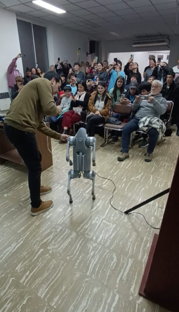 Lo coordinó la Secretaría de Desarrollo Productivo y fue dictado anoche, de forma gratuita, por Sergio Cusmai, quien sorprendió con una dinámica interacción junto a dos robots cuadrúpedos.