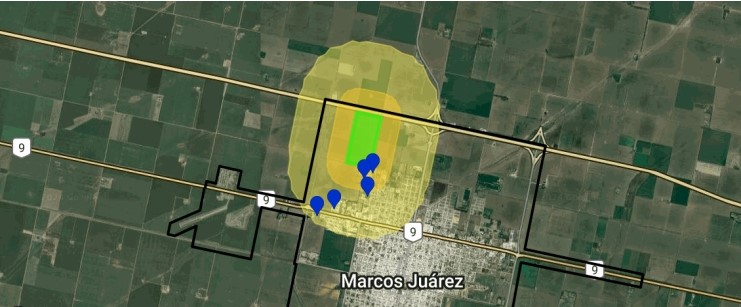 A partir del día 01 de febrero del corriente año se puede realizar una aplicación de productos fitosanitarios en el campo de Francioni, Alberto Elio y Horacio Gustavo según receta fitosanitaria online Nº 381316 de fecha 30 de enero de 2025. El lote está ubicado al noroeste de la ciudad y de la Circunvalación Este, entre Ruta Nacional Nº 9 y la continuación de Calle Pública.
