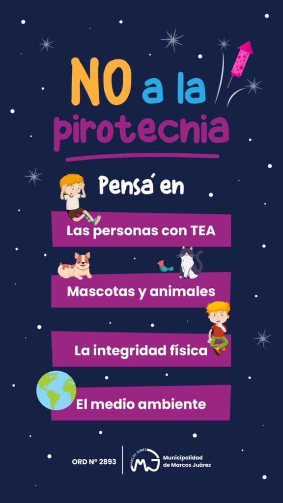 La Municipalidad de Marcos Juárez recuerda a la comunidad la importancia de respetar la normativa vigente y celebrar sin pirotecnia.