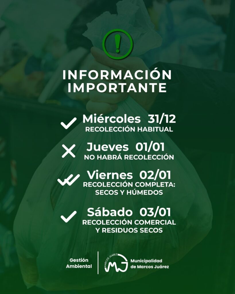 El jueves 1 de enero no hay recolección, el viernes se recolecta todo, secos y húmedos. El sábado con la recolección comercial se llevará también los residuos secos. Esta semana […]