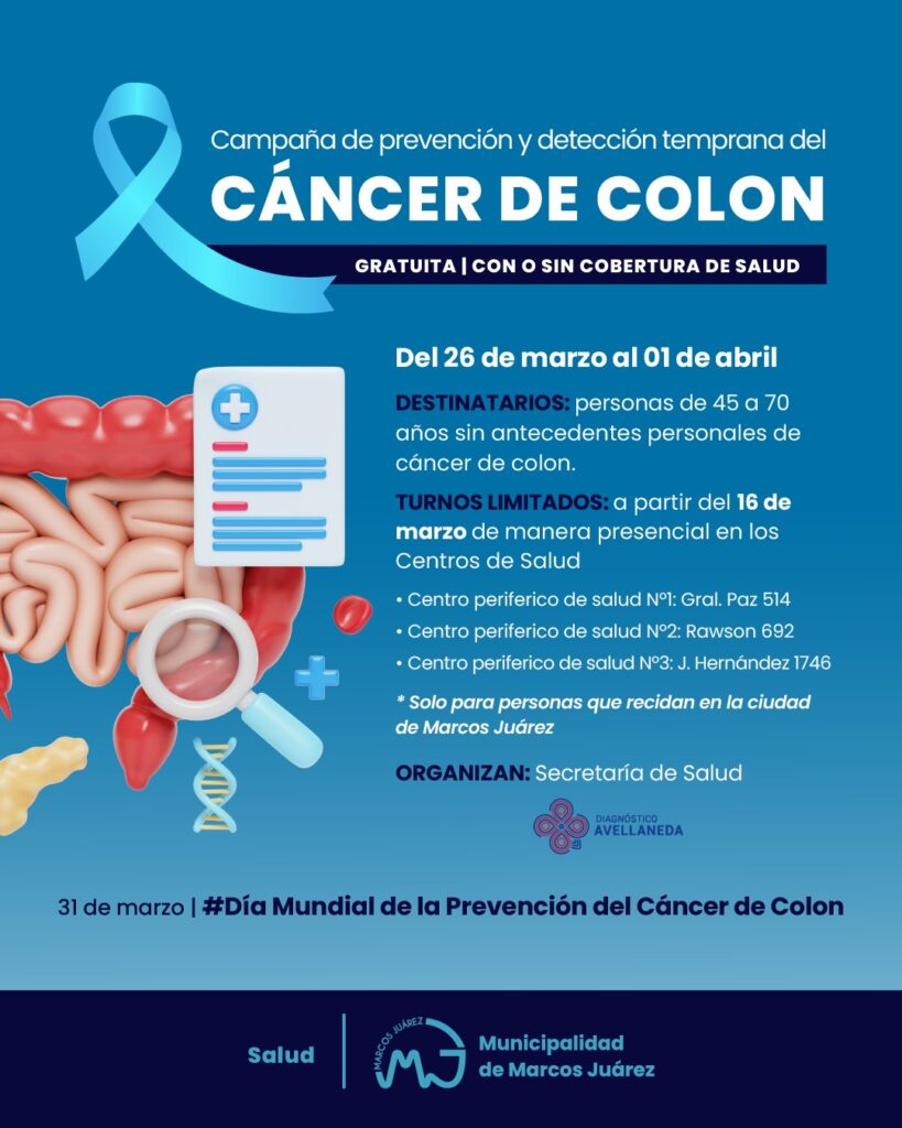 En el marco del Mes de la Prevención del Cáncer de Colon, la Secretaría de Salud de la Municipalidad de Marcos Juárez lleva adelante una campaña de concientización y detección