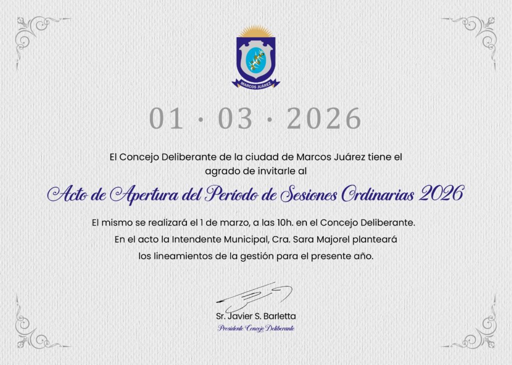 EL PRÓXIMO DOMINGO A LAS 10 H SE REALIZARÁ EL ACTO DE APERTURA DE SESIONES DEL CONCEJO DELIBERANTE