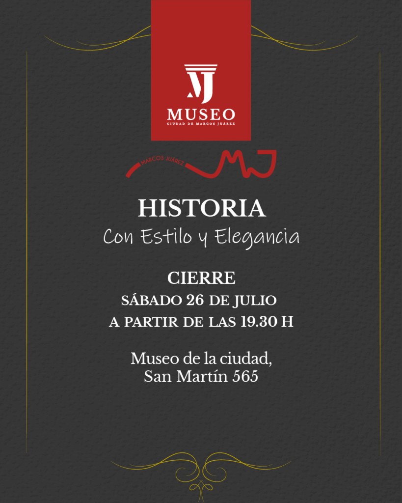 Este sábado 27 de julio a las 19.30 h, se realizará el cierre de la muestra «Con estilo y elegancia» en el Museo de Marcos Juárez. Para despedir esta propuesta cultural, se organizará un desfile en el que participarán ocho mujeres, quienes exhibirán prendas y estilos representativos del contenido expuesto durante las últimas semanas.