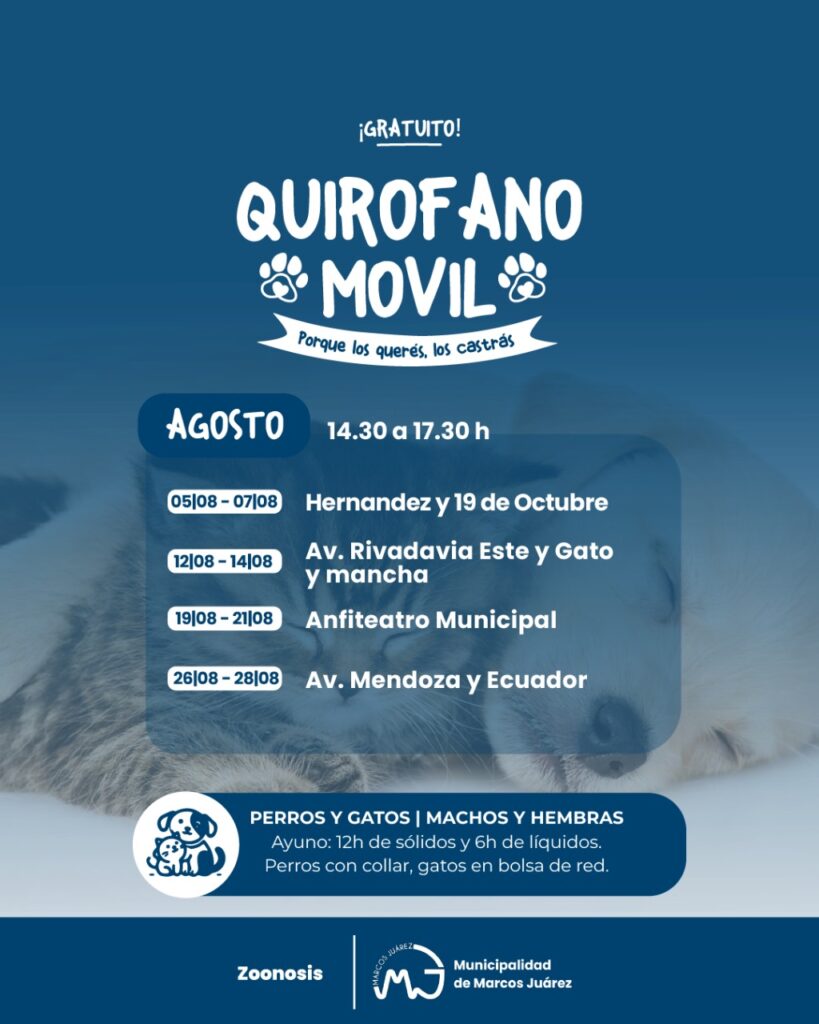 La Municipalidad de Marcos Juárez, a través del Área de Zoonosis, comunicó cuales son las próximas fechas de castraciones masivas y gratuitas en la ciudad.