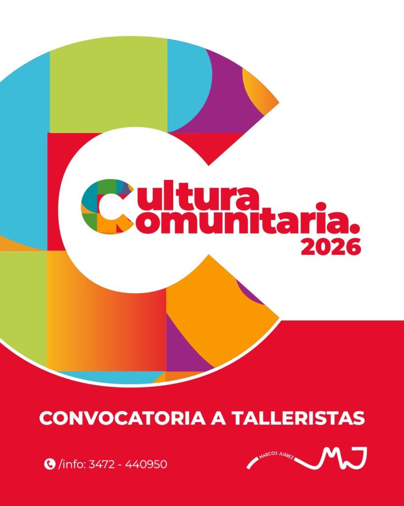 La Municipalidad de Marcos Juárez, a través de la Secretaría de Cultura y Deporte, informa que ya se encuentra habilitada la convocatoria a talleristas para el año 2026, en el marco del Programa de Cultura Comunitaria.